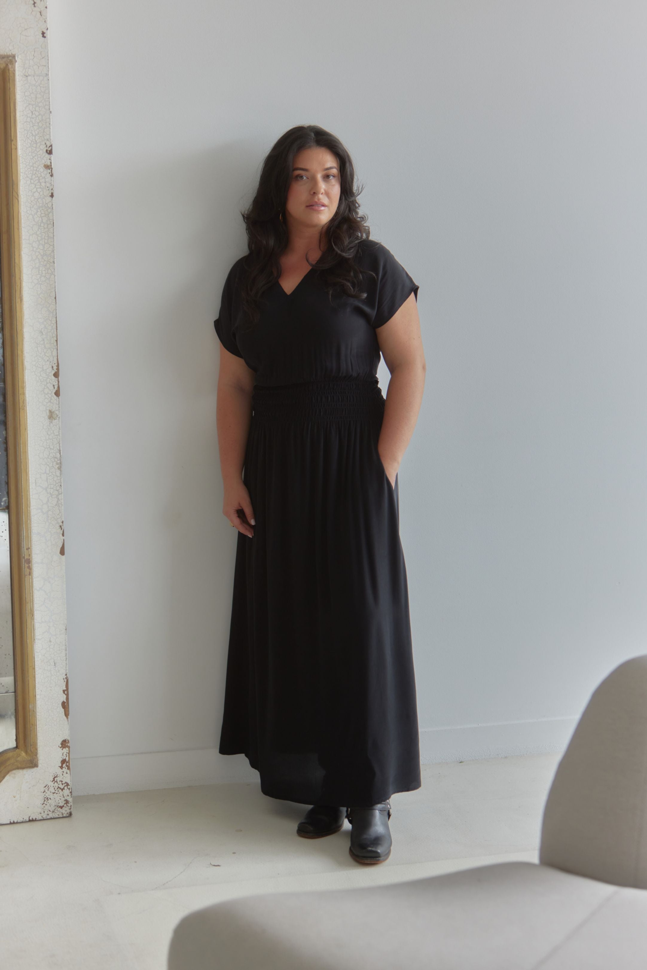SERENA Shirred Dress - Black