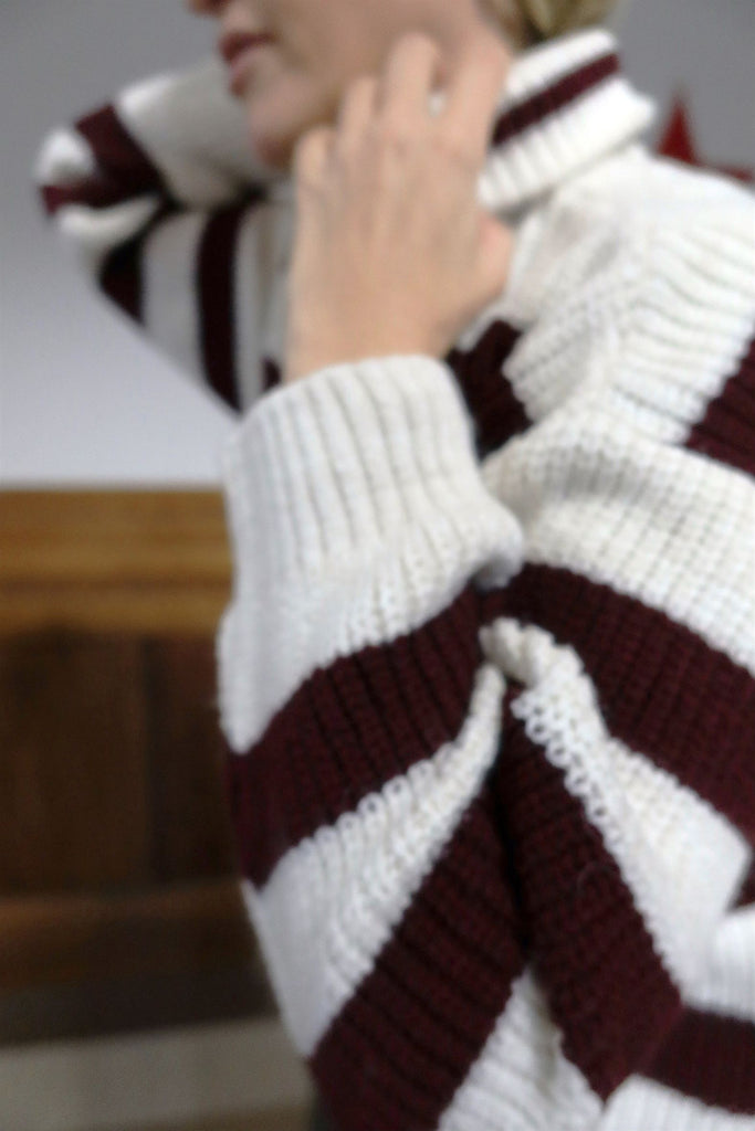 MICHEL High-Neck Ribbed Striped Sweater - Bordeau